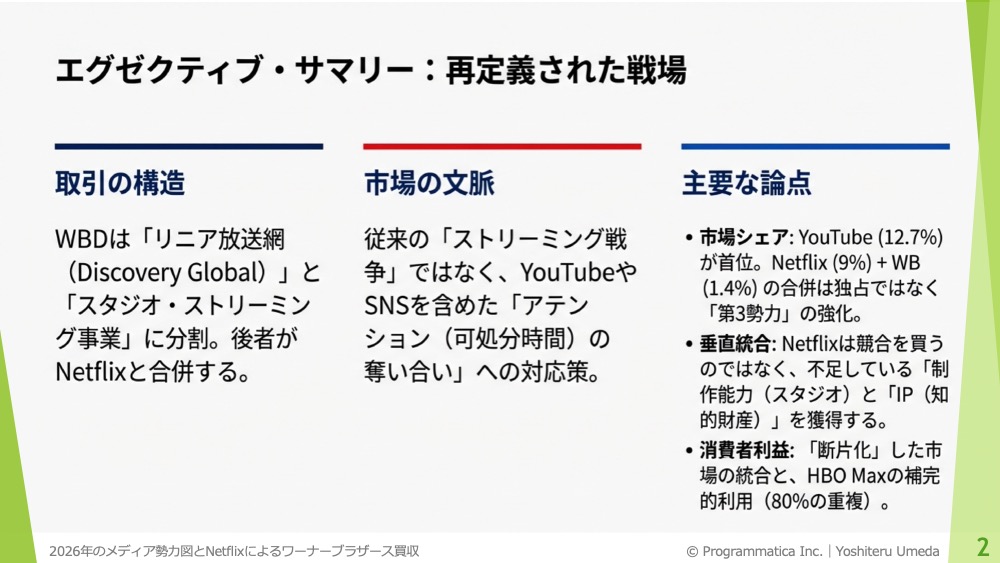 2026年メディア勢力図とNetflixによるWBD買収