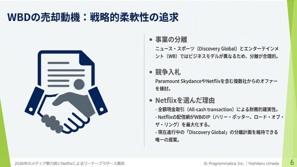 今回は、そのNetflixによるWBDの買収を巡る