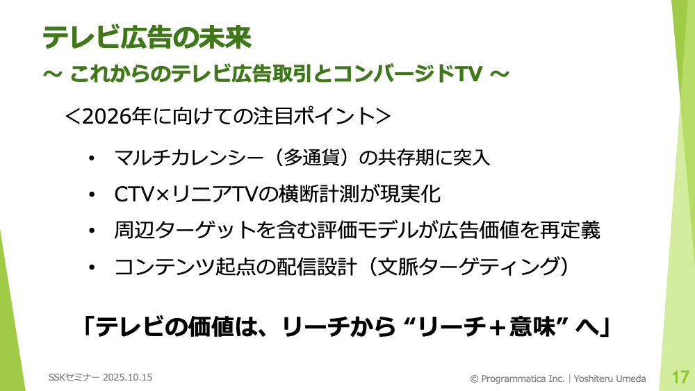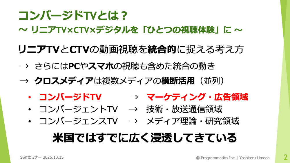 ※本稿は2025年10月15日開催SSKセミナー「テレビ広告の進化」での講演内容(「コンバージドTV」におけるテレビ広告について)を再構成したものです。